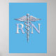 Póster Enfermera inscrita RN Silver Como Caduceus Baby Bl