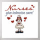 Un bonito diseño de una enfermera de ragdoll con camisetas de enfermería, caramelos, tazas, tarjetas, pegatinas, bolsos de té, botones y otras prendas de enfermería y regalos con un texto que dice "¡Las enfermeras dan cuidados intensivos"!