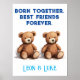 Diseño de osos pequeños: tan lindo, tan único para un vivero de niños gemelos. "Nació juntos. Los mejores amigos para siempre". Personaliza con nombres de niños gemelos. Poster en diseño vintage. Ver mi gama de productos de otros osos pequeños.