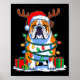 Póster English Bulldog Dog Tree Christmas Lights Funny Xm