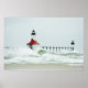 Grandes olas golpearon el faro en el muelle norte en St. Joseph, Michigan. Los vientos y las olas fueron causados por la supertormenta Sandy el 10-30-2012. Imagen del faro, copyright de Constance McGuire 2012.