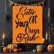 Famoso, gracioso, poster de la fiesta de Halloween para dar la bienvenida a los invitados en el ánimo festivo de Halloween. El divertido ilustracion de texto tiene una advertencia oscura y sangrienta. Las citas/encabezados "Introduzca por su propio riesgo" se pueden personalizar fácilmente con su elección de texto y estilo de letra. Si buscas artículos coincidentes para Halloween, encuentra todos en la tienda "halloweengallery". Enlace: https://www.zazzle.com/store/halloweengallery