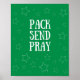 "Paquete. Enviar. Reza" Este poster le recuerda a los espectadores empacar, enviar y rezar por regalos de caja de zapatos para la Operación Navidades Niño. Excelente para publicidad o decoración para tu campaña de zapatos. *Este producto no está autorizado o aprobado por Operación Navidades de Niños, pero está diseñado para apoyar el trabajo que hacen sus voluntarios para hacer posible su misión.