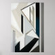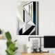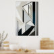 La precisión y la elegancia se encuentran en esta composición geométrica. Las líneas nítidas y los tonos neutros de blanco, negro y gris crean una estructura visualmente tranquila y sofisticada. El toque sutil de azul y dorado añade profundidad. Ideal para interiores modernos que valoran el orden y el diseño limpio.