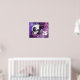 El poster de fútbol de los chicas con un tema de color púrpura presenta una imagen abstracta de una pelota de fútbol que acaba de patear "denting the net" en la parte trasera del gol con una jugadora de fútbol femenino semitransparente y cubierta de silueta, mezclada con una textura gruesa en tonos violetas - personaliza más a este poster añadiendo una foto de equipo o jugador - el número de camiseta del jugador, el nombre, el nombre, el nombre del equipo y el año escolar del colegio son fácilmente personalizable. - por katz_d_zynes