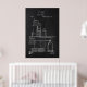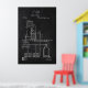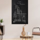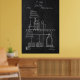 Un diagrama original de equipos de fabricación de cerveza patentados en 1844, diseñado para el arte de la pared sobre un fondo de pizarra.