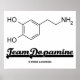 Se ve afectado por la dopamina, el neurotransmisor de catecolamina involucrado en el control de los movimientos, la señalización del error en la predicción de recompensa, motivación y cognición. Muestra tu irónica actitud química con este poster de estructura de molécula química de dopamina con el título de truismo "Team Dopamina"!