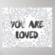 Corona floral de Elderberry en un hermoso esténcil rubor con el áspero guion personalizado "eres amado" y un ilustracion conejito. Decoración de pared perfecta para una guardería o una sala de juegos para niños con ilustraciones de lápiz y escritura tierno.