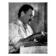 Un efecto de boceto a lápiz edita una foto vintage de Ernest Hemimgway en su máquina de escribir, preparando tal vez una nueva obra maestra.