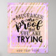Moderna y elegante tipografía cita regalo 'Errores son prueba que estás tratando' para chicas y mujeres. Gran idea de regalo para graduación, éxito de examen, estímulo, cumpleaños u otra ocasión como se desee. Añade tu propio texto para personalizar.