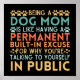 Divertido sarcástico diciendo diseño "Ser una madre de perro es como tener una excusa permanente incorporada para por qué estás hablando en público". Diseño de citas humorísticas para tía, mamá, abuela, abuelo, hermana, hija, compañero de trabajo, amiga, hija, hermana... Idea de regalo perfecta para el sarcasmo y el sarcasmo amante de los dichos, toma esto como regalo de cumpleaños, día de la madre, de vuelta a la escuela, día del profesor,