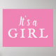 Es un Rótulo Baby Shower de tipografía rosada Chica. Señal de ducha de bebé rosa con It's un texto chica en tipografía de moda en color blanco. Este fiesta de ducha de bebé se personaliza fácilmente con tu texto.