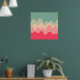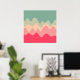 Un diseño hecho de olas irregulares o de colinas como formas dispuestas como un paisaje con una progresión de bandas una detrás o encima de otra que juegan abstractas con el color y el espacio. El diseño también recuerda mucho al sonido y a la música, con formas onduladas y colores armoniosos.