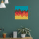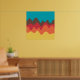 Un diseño hecho de olas irregulares o de colinas como formas dispuestas como un paisaje con una progresión de bandas una detrás o encima de otra que juegan abstractas con el color y el espacio. El diseño también recuerda mucho al sonido y a la música, con formas onduladas y colores armoniosos.