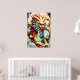 Póster Escalas azul y oro del dragón respirador de fuego