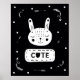 Decore su preciosa guardería con este adorable poster conejo blanco y negro. © Julie McIver