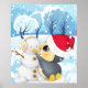 Póster Escena De Invierno Con Pingüino Y Hombre De Nieve