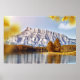 Montañas nevadas blancas en medio de tonos dorados del otoño.