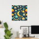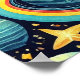 Escena espacial vibrante y caprichosa llena de varios cuerpos celestes. Planetas de diferentes tamaños y colores, incluyendo anillos y detalles de superficie, están dispersos por un fondo oscuro. Una gran luna creciente se destaca de manera prominente, acompañada de estrellas y elementos celestes brillantes. El tono general es colorido y soñador, capturando la vastedad del universo con un toque artístico, reminiscente de un paisaje cósmico fantástico.