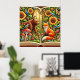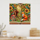 Póster Escena Forestal Con Oso, Fox, Sunflowers
