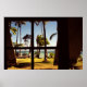 Escena tropical de la playa de Fiji Beach - Fotografía de una playa en las Islas Fiji con palmeras, hamacas y un banco de picnic visto a través de las persianas abiertas de una cabaña de playa. © Alan Harman Photography 2004. Todos los derechos reservados. www.alanharmanphotography.com impresión poster 120418