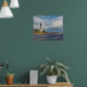 Poster escénico representando un poco del sur de Florida, visto desde el agua. La torre es la luz de ensenada de Hillsboro de 1907, situada en la desembocadura de la concurrida vía fluvial que conduce al interior desde el borde oriental del océano Atlántico, y un punto de referencia marítimo familiar para los que viajan desde el mar.