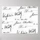 Las firmas de cuatro de las escritoras más famosas de la historia: Jane Austen, Charlotte Brontë, Virginia Woolf y Louisa May Alcott.