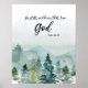 Cita decorativa de la Biblia con árboles y montañas y letra manuscrita.