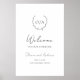 Poster de señas boda blanco y negro de estilo clásico con un escudo boda con su monograma dentro de una corona. Debajo está el mensaje "Bienvenidos para siempre" junto con sus nombres en un guión / caligrafía. Este sencillo pero elegante cartel de bienvenida es ideal para un boda formal.