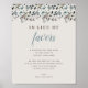 Si estás eligiendo una organización benéfica significativa (¡o más!) para donaciones en lugar de favores matrimoniales, este signo de donación de bodas es la manera perfecta de anunciarlo con tus invitados. Este letrero presenta flores y hojas de acuarela pintadas, y dice "en lugar de favores" con amplio espacio para escribir su propio mensaje personalizado usando las plantillas de texto proporcionadas. Este diseño se coordina con la colección de bodas "Garden Escudo" en Eggshell.