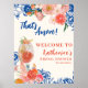 Establece el tono para una celebración vibrante y festiva con nuestro cartel de bienvenida para despedida de soltera con flores y spritz de naranja "That's Amore". Con llamativas flores naranjas y coral con un diseño juguetón inspirado en los cítricos, este cartel es perfecto para dar la bienvenida a los invitados a una despedida de soltera divertida y elegante. Ideal para un tema de verano o inspirado en Italia, los colores brillantes y alegres aportan calidez y encanto, creando una primera impresión impresionante para tu día especial.