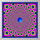 En esta imagen bidimensional la disposición de las líneas y el diseño dan la percepción de un espacio curvo, con una esfera flotante. Los colores de esta imagen no son "web safe" y por lo tanto se ven en el monitor.