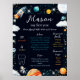 Este audaz cartel de hito galáctico captura la primera órbita del bebé alrededor del sol de una manera divertida y llena de historias. Con cohetes, planetas, estrellas brillantes y un astronauta flotante, convierte detalles preciosos del primer año en un recuerdo cósmico. Perfecto para cumpleaños con tema espacial y telones de fondo inolvidables para fotos.