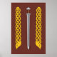 Este ilustracion original de Richard H. Fay representa una espada de la época vikingüense (temprana edad medieval) con un pomelo de trilobato basado en uno del Museo Británico que se exhibe entre dos bandas de trenzas basadas en un diseño de una escultura de piedra de la Edad Viking en la Isla de Man.