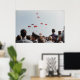 Esta brillante estampada vintage coloreada presenta audaces paracaidistas flotando por el cielo en un programa aéreo europeo de 1968. Es un regalo maravilloso para el paracaidista, militar o amante de la fotografía vintage en tu vida.