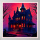 Póster Espeluznante casa embrujada en el diseño del atard
