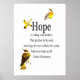 Cita de Emily Dickenson, "La esperanza es algo con plumas que se perfila en el alma y canta la melodía sin las palabras y nunca se detiene en absoluto".
