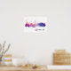 Este diseño presenta un ilustracion del horizonte de Londres con salpicaduras de pintura acuarela.
