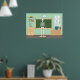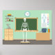 Un esqueleto al frente de una clase de ciencias en la escuela. Este diseño parece realmente efectivo en este Poster