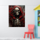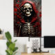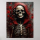 Un esqueleto en una capa roja con flores rojas IA generó arte