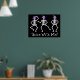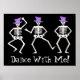 Estos esqueletos bailarines hacen un gran poster de Halloween. Diversión de colgar en la puerta o en las paredes para fiestas o trucos o curanderos. Tres esqueletos están bailando una broma sobre un fondo negro con las palabras de personalizable "Baile conmigo". Puedes hacer personalizar a tu propio dicho o personalizar con un nombre. El arte original, pintado a mano, presenta esqueletos bailando con sombrero de tope morado sobre sus cráneos y está en los colores negro y blanco con morado. Consulta mis otros productos con este arte para ver productos en goulish para Halloween incluyendo invitaciones, tarjetas de felicitación, camisetas, fundas electrónicos y más. Personalizable completo para la personalización. El arte original es de Phyllis Dobbs que te desea una Halloween feliz y honesta.