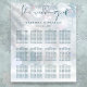 Un elegante esquema de asientos de boda invernal con delicados copos de nieve que caen sobre sus nombres personalizados, fecha especial y detalles de asientos de celebración en un fondo de escarcha invernal. Diseñado por Thisisnotme©