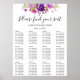 Póster Esquema de Asientos Floral Acuarela Lila y Púrpura