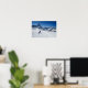 Impresión poster de una esquiadora en las pistas de la montaña Matterhorn a través de la nieve fresca en un hermoso día con un cielo azul claro en la estación de esquí de Zermatt, cantón Valais en Suiza.