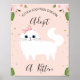 La estación de adopción de Gatitos Blancos Rótulo del partido de cumpleaños Sweet adopta un cartel de cumpleaños de gatito con un gatito magnífico, algunos arreglos florales de rosas rosas rosas rosas y algunos falsos puntos de Relieve metalizado de oro en un fondo rosado. Ideal para una estación de adopción de gatos para una fiesta de cumpleaños con temática de gatito.