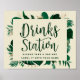 Cartel de Estación de Bebidas Personalizadas para Boda con Follaje Tropical de Moda y Hojas - Marcador de Moda con Letras de Tinta Bruñida. Una forma divertida de dar las gracias a sus invitados por venir a su boda. En una paleta de colores audaces de verdes ricos, esmeralda y con un aspecto de lámina dorada. Este diseño es perfecto para una boda en la playa, de destino o de verano. Con sentimientos de un paraíso tropical, este diseño de hojas de palma vívidas complementará el lugar de su boda en la playa o tropical. En un esquema de color verde oscuro, azul verdoso, esmeralda, follaje y dorado - ¡Cartel Personalizado de Estación de Bebidas para Recepción de Boda!