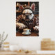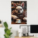 Añade sabor y diversión a tu pared con este peculiar poster barista de Bulldog francés. Con una camisa de franela marrón y blanca y gafas de tamaño excesivo, el cachorro es de acción media vertiendo un trenzado de espuma con precisión de tracción. Su mirada intensa y su sonrisa torcida dan a entender que ha probado los productos —tal vez demasiado. Detrás de él, un menú de pizarra incluye bebidas como "Fur Macchiato" y "The Slobber Shot". Ideal para las cocinas, cafés o regalos a los amantes del perro y del café por igual.
