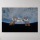 Con el respaldo de la oscuridad del espacio y el horizonte de la Tierra, la Estación Espacial Internacional es vista desde el Descubrimiento del Transbordador Espacial mientras las dos naves espaciales comienzan su separación relativa. Anteriormente, las tripulaciones de STS-119 y Expedition 18 concluyeron 9 días, 20 horas y 10 minutos de trabajo cooperativo a bordo del transbordador y la estación. El desacoplamiento de las dos naves espaciales tuvo lugar a las 14.53 horas. (CDT) el 25 de marzo de 2009.
