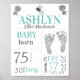 Póster Estadísticas de nacimiento de bebés Huella del pie