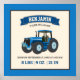 Póster de anuncio de nacimiento para habitación de bebé con tipografía moderna y tractor azul adorable. Agrega todos tus detalles encantadores en esta plantilla fácil de usar para crear tu propio póster de estadísticas de nacimiento único.